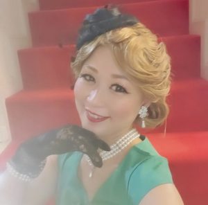 - メイク:赤やワイン色の口紅、ダークブラウン〜ブラックのアイシャドウで陰影を深く。